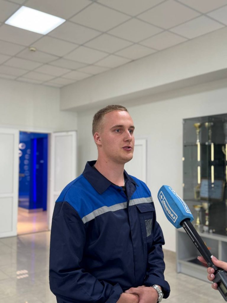 – Это моё место прохождения практики, пришёл я из университета ГрГУ имени Янки Купалы. Моя работа заключается в контроле рабочих мест, инструкций, уборок, оснастки, а также в общении с операторами станков. Я не считаю себя готовым на 100%, ведь невозможно заранее предугадать все нюансы. Но коллектив очень дружелюбный, молодые ребята понимают друг друга и всегда готовы помочь, поэтому я чувствую себя уверенно» – рассказал о себе инженер-технолог Сергей Главдель.