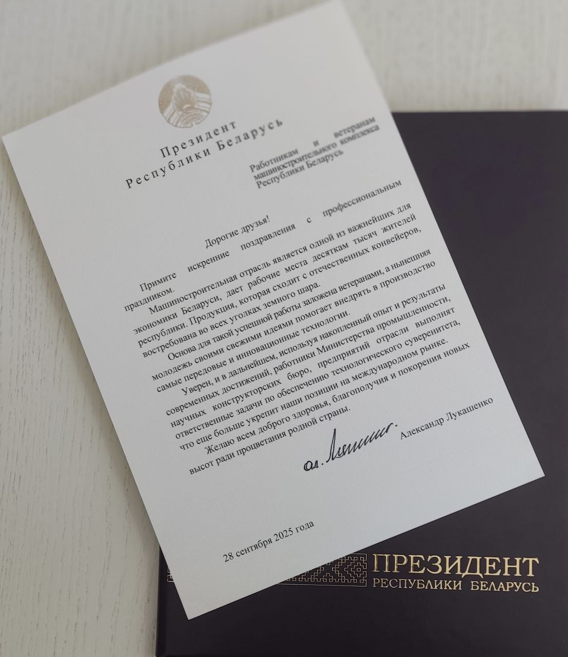 Уважаемые коллеги, ветераны отрасли! От имени Министерства промышленности Республики Беларусь и себя лично сердечно поздравляю вас с Днём машиностроителя! Машиностроение — основа нашей промышленной мощи, двигатель инновационного развития страны. Благодаря развитию этого сектора мы создаем рабочие места, укрепляем национальную безопасность и формируем будущее экономики, основанное на передовых технологиях и высоком уровне производства. Сегодня мы чествуем […]