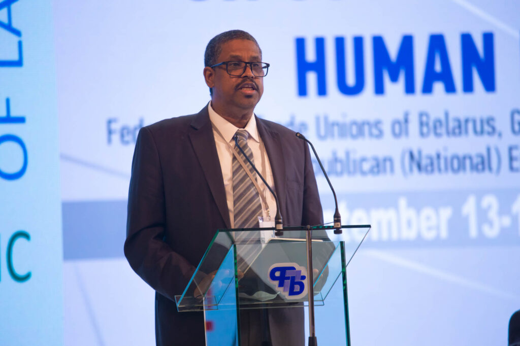 На Международной конференции «Влияние глобальных экономических вызовов на социально-трудовые права человека» в Минске выступил генеральный секретарь профсоюзов рабочих Судана Сирралкатим Аламин Абдулгадир Мохаммед. Он рассказал, что в непростых для всего мирового сообщества условиях есть ряд стран, которых глобальные вызовы как будто не коснулись. Они жестоко преследуют свои интересы для достижения целей и используют любые методы.